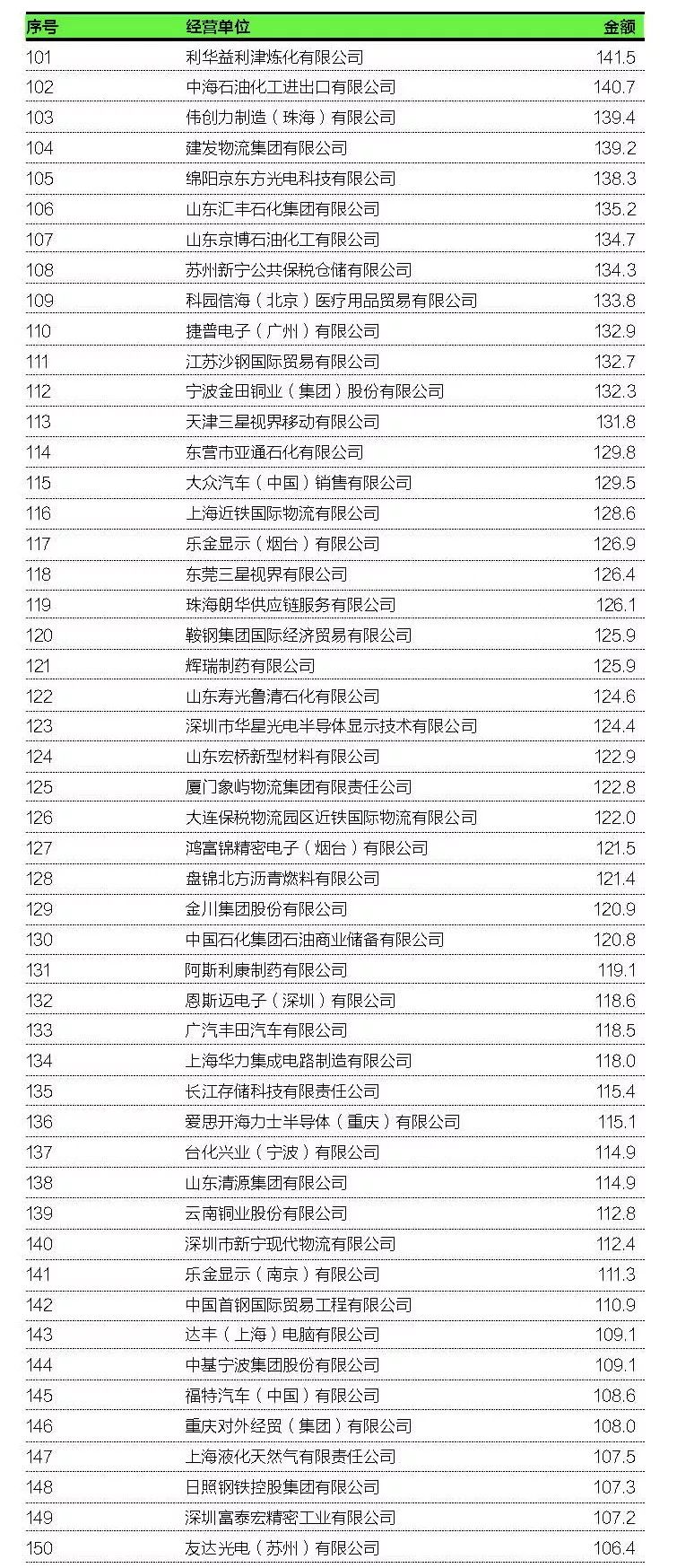 進(jìn)口榜單進(jìn)步最快的綿陽(yáng)京東方光電科技有限公司進(jìn)口規(guī)模從上年的50萬(wàn)元飆升至138.3億元,首次入圍就取得第105名的成績(jī)。