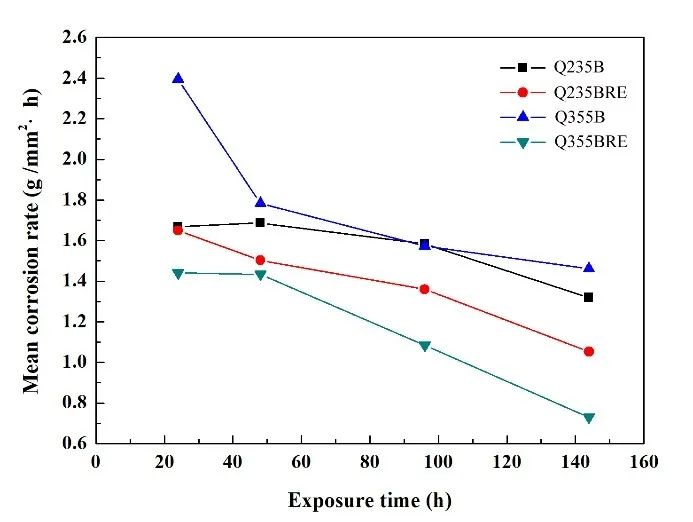在鋼中加入微量稀土(RE)元素可以顯著地改善鋼的耐蝕性,特別是量大面廣的普碳鋼(占比達70%),加入微量的高豐度LaCe稀土合金化后可以達到傳統CuPCrNi耐候鋼的同等耐腐蝕性能水平,形成稀土耐蝕普碳鋼技術。