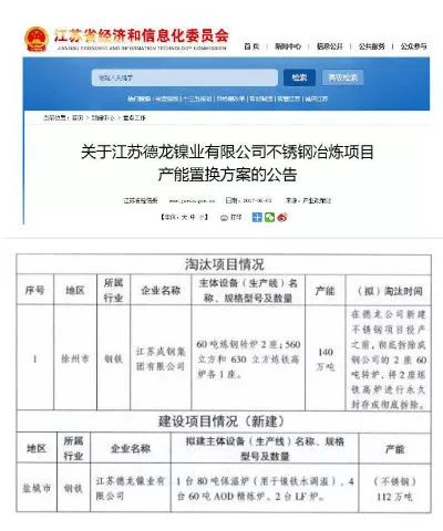6月2日,經江蘇省政府批準,江蘇德龍購買江蘇成鋼140萬噸碳鋼產能置換112萬噸不銹鋼產能,置換產能比為1.20:1,合規復產。這一產能置換案例,反映我國禁止新增鋼鐵產能及產能置換產業政策正在有效落實。