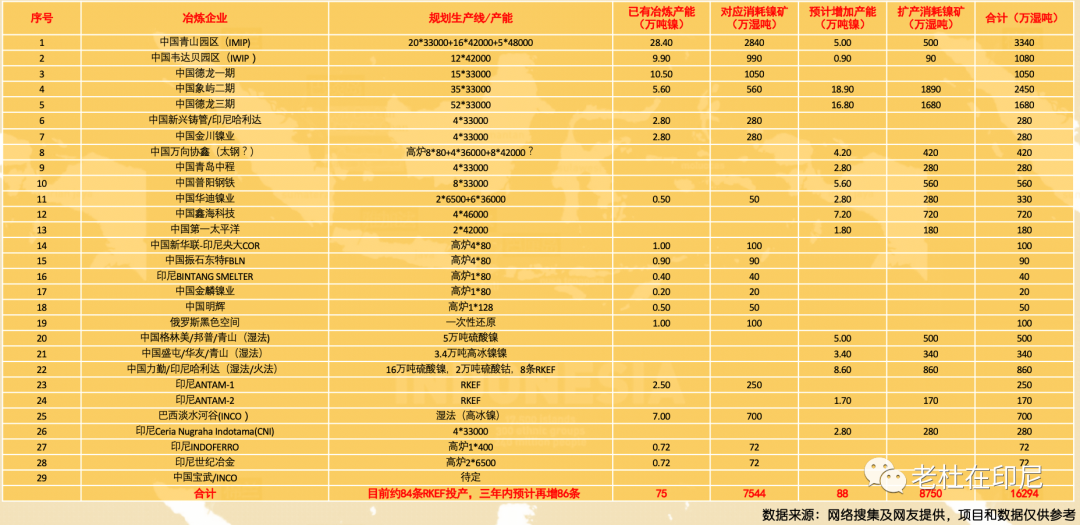 印尼中外鎳產業產能現狀及三年規劃預測