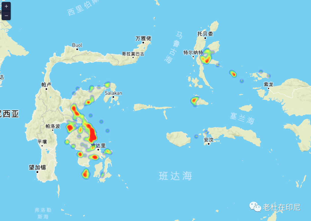 印尼目前29座中外鎳冶煉廠分布圖。其中:蘇拉威西19座,北馬魯古8座,爪哇2座。