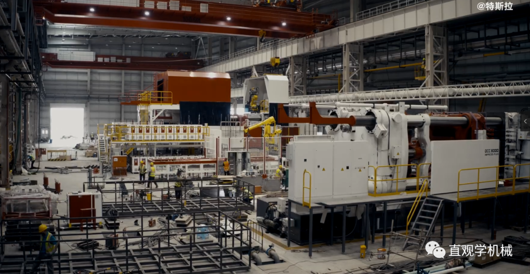 特斯拉于2020年10月公布一張照片顯示,上海工廠正在安裝的3臺超級壓鑄機(jī)。