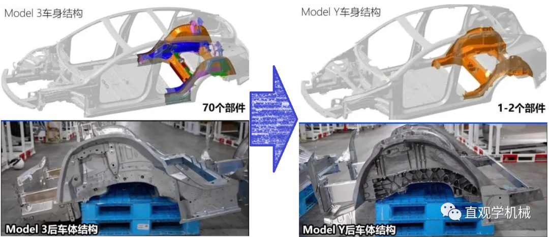 而2020 年,一張來自特斯拉的工程透視圖顯示:相較 Model 3 所需的 70 個(gè)零部件,ModelY 整塊后車底(rearunderbody)只由 2 個(gè)零件組成。