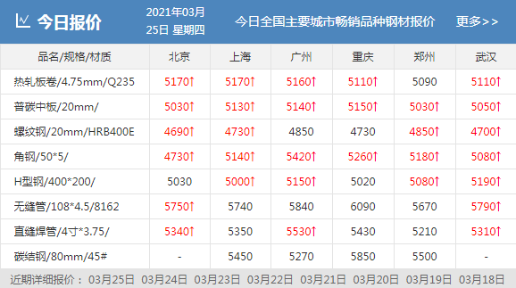 經(jīng)研究決定,八鋼股份板材產(chǎn)品新疆區(qū)域價(jià)格做如下調(diào)整:熱軋板卷價(jià)格上調(diào)50元/噸、中厚板價(jià)格上調(diào)100元噸。以上價(jià)格調(diào)整通知自2021年3月25日13:00起生效執(zhí)行。