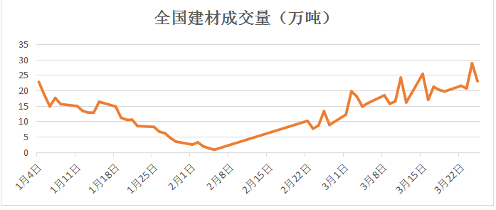 下游需求逐步釋放,雖未達到往年旺季水平,但本周成交量日均保持在20萬噸以上,接近年前平均值。據市場反饋,隨著年前囤貨逐步消化,采購意愿有所回升,且在環保加嚴的預期下,鋼價支撐較強。