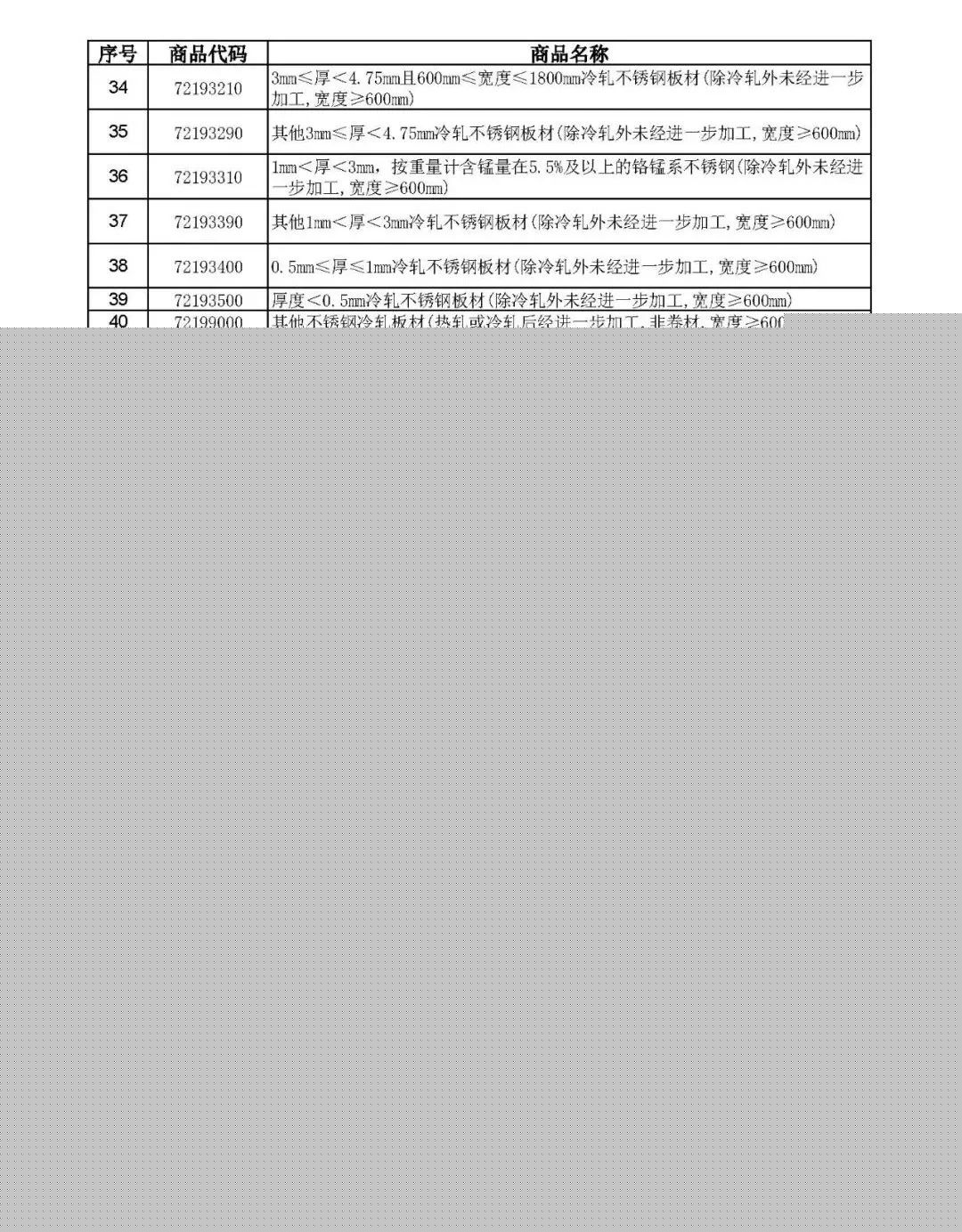 取消出口退稅的鋼鐵產(chǎn)品清單
