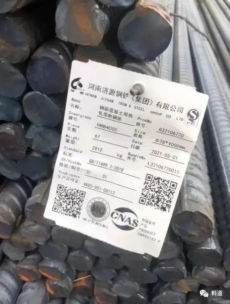 記者在施工現場看到,地上堆積鋼筋的吊牌顯示為濟源鋼鐵,生產許可證為XK05-001-00112,規格為28*9000mm。但鋼筋上所顯示的鋼號是XK05-001-00614,為陜西龍門鋼鐵。濟源鋼鐵公司對此表示,公司所生產的鋼筋許可證為XK05-001-00112,并非XK05-001-00614,與濟鋼公司產品合格標識不符,涉嫌存在造假情況。