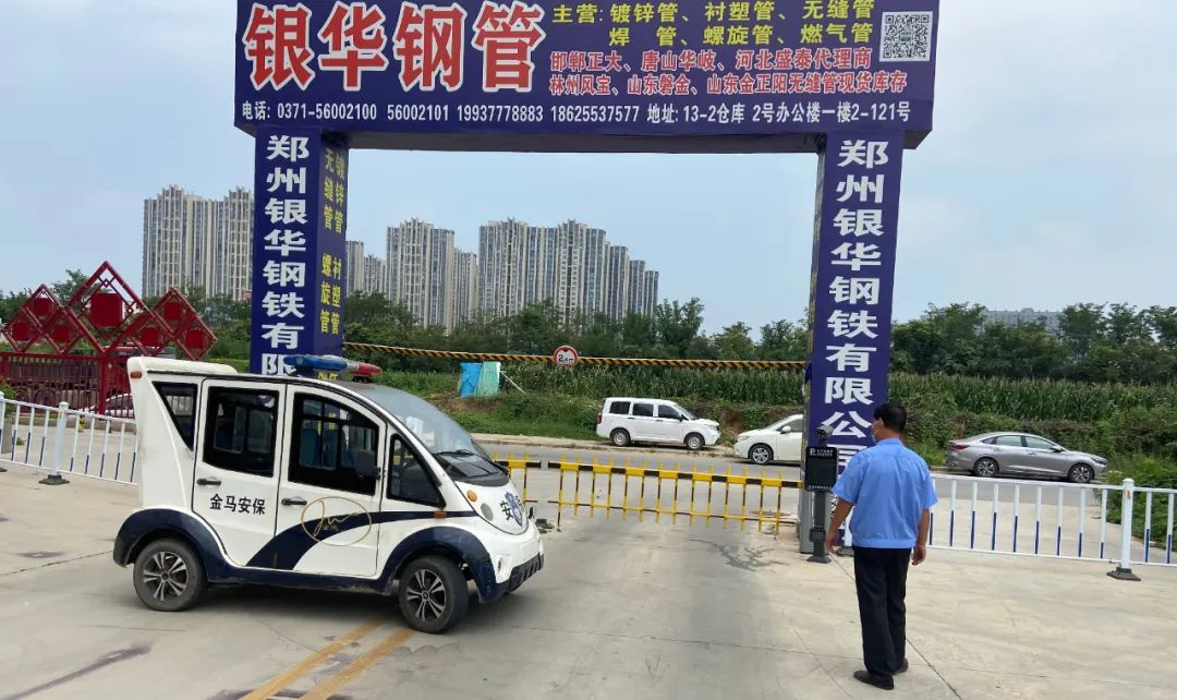 8月4日的天氣有點炎熱,但是,平時車水馬龍的金馬鋼材市場卻顯得有點冷清。市場除了北側大門外設置了疫情防控崗位,門衛仔細的讓進入的司機和上班的人們掃碼、測試體溫,其他進出口都進行了封閉。