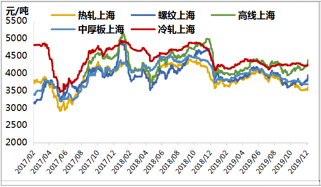 圖表1 主要鋼材品種上海市場現(xiàn)貨價(jià)格走勢(shì)