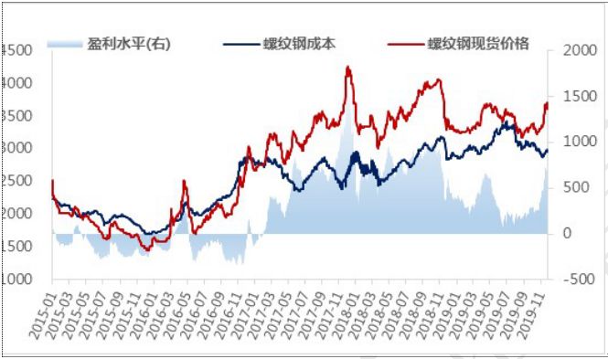 圖表3 根據(jù)成本模型測(cè)算的鋼廠螺紋鋼盈利情況