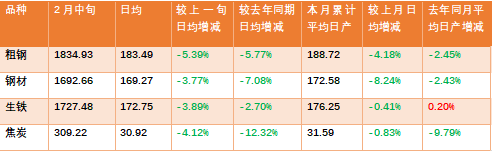受日韓等海外市場新冠疫情擴散影響,恐慌情緒不斷推升,全球金融市場繼續下挫,商品期貨多數下跌,今日黑色系弱勢震蕩,現貨成交偏弱,報價穩中有跌。需警惕3月拋售壓力!