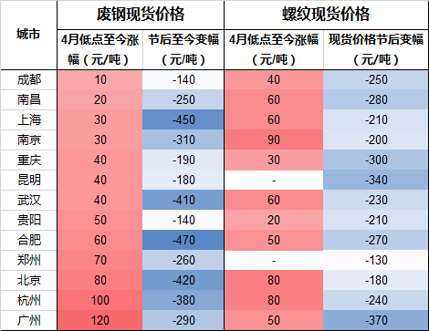 近日市場情緒在期貨盤面的連續拉漲下得以提振,廢鋼價格也在經歷前期“暴跌”后,大幅反彈,甚至杭州、廣州等地區重廢價格拉漲逾100元/噸。在此情況下,電弧爐鋼廠開工率仍得以緩慢上升。主要原因有:其一,利潤驅動。據SMM調研,即便廢鋼采購價格反彈后,當前53.8%的電弧爐鋼廠仍反饋當前有50-100元/噸的利潤,在已經開工的鋼廠當中,75%以上的企業表示當前處于盈利狀態。且據SMM數據模型測算,以1890元/噸的常州不含稅廢鋼價格計算,電弧爐鋼廠噸鋼毛利在200元/噸以上。其次,迫于資金回籠壓力。節后鋼價“斷崖”式下跌,加之電弧爐鋼廠經歷2個月余的“空窗期”,資金端存在一定壓力。而近期終端需求持續恢復,盤面也持續性走高,現貨市場出貨狀況明顯好轉,相關企業隨即復產,且積極出貨,以盡快回籠資金。就后期來看,隨著高爐廠檢修的逐步復產以及電弧爐鋼廠開工率的回升,廢鋼需求回暖,預計仍有一定反彈空間,從而制約電弧爐鋼廠開工率的進一步大幅拉漲,后期或維持65-75%左右的開工率狀態。華東地區:開工率從4月初的48%攀升10%至58%。代表鋼廠A:當廢鋼價格上調近100元/噸,利潤隨即萎縮,當前僅幾十塊錢的薄利。當前主要就是積極出貨,對后市行情不太樂觀,廢鋼價格預計還會持續反彈,而成材端即便漲價幅度也非常有限。華中地區:開工率仍維持在35%左右的低位,湖北地區電爐廠基本仍尚未開工,河南地區電爐廠則多反饋盈利近100元/噸。代表鋼廠B:開工50%左右。利潤是有的,但是漲價以后,就不太好采購了。代表鋼廠C:當前盈利由前期的一百多塊錢縮減至僅幾十塊錢,生產倒還是正常的,出貨情況也較前期稍有好轉。代表鋼廠D:當前還是在正常生產的。廢鋼價格上漲了,只能將將保本,現在采購價格在2250-2280元/噸。(來源:SMM)