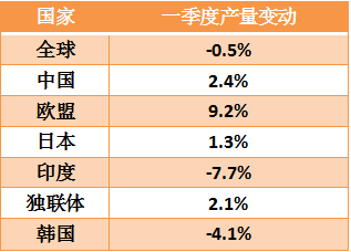 3月僅中國和俄羅斯生鐵產(chǎn)量增長(zhǎng)1%,其他國家均出現(xiàn)下降,其中歐盟28國減少14.2%,印度減少14.6%,日本減少7.9%,韓國減少9.5%。