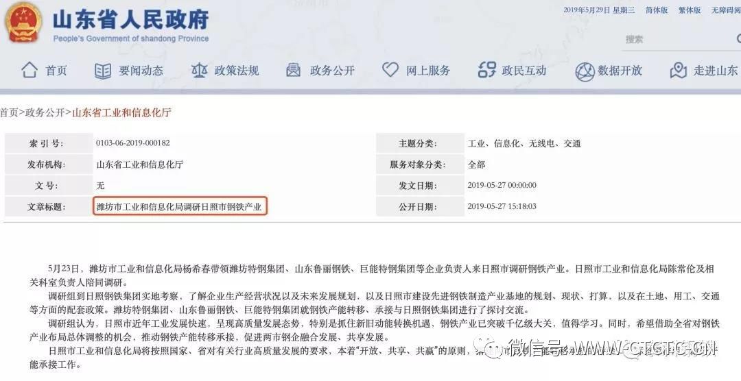 在此前5月份,山東省人民政府網(wǎng)站有公開信息稱“濰坊特鋼、魯麗鋼鐵、巨能特鋼與日照鋼鐵就鋼鐵產(chǎn)能轉(zhuǎn)移、承接進行探討交流”也就是說位于濰坊的三家鋼鐵企業(yè)產(chǎn)能也有可能會轉(zhuǎn)移至日照鋼鐵,但此信息在發(fā)稿前仍未在官方媒體得到確認。