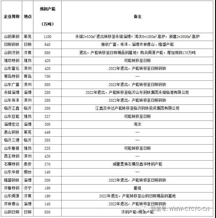 山東省23家鋼廠、地點、產(chǎn)能及其未來變化情況