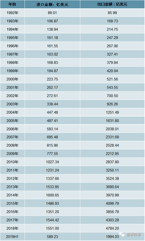 1992-2019年H1中美貿(mào)易逆差統(tǒng)計(jì)