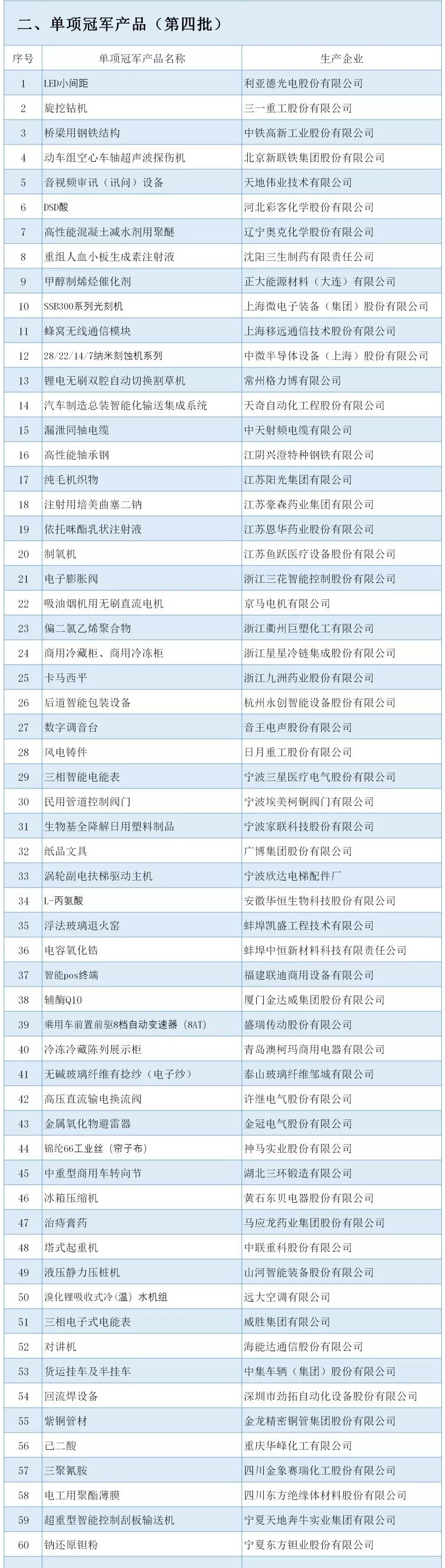 附擬公布的第四批及擬通過復核的第一批制造業(yè)單項冠軍完整名單,以及第二、第三批制造業(yè)單項冠軍完整名單: