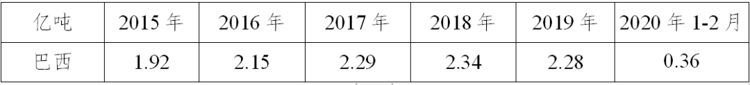 2020年1-2月,中國(guó)自澳大利亞進(jìn)口鐵礦石1.07億噸,同比小幅增加85萬(wàn)噸。根據(jù)澳大利亞工業(yè)、創(chuàng)新與科學(xué)部預(yù)測(cè),2020年,澳大利亞鐵礦石出口量預(yù)計(jì)為8.78億噸,增長(zhǎng)3.7%。根據(jù)礦山季報(bào)披露的數(shù)據(jù),力拓下調(diào)2020年皮爾巴拉地區(qū)鐵礦石產(chǎn)量預(yù)期值至3.24億噸-3.34億噸,同比增幅為-300萬(wàn)噸至700萬(wàn)噸。2020財(cái)年,必和必拓西澳產(chǎn)量目標(biāo)為2.73億噸-2.86億噸,較2019財(cái)年增加300萬(wàn)噸-1600萬(wàn)噸。FMG2020財(cái)年出貨量目標(biāo)1.70億噸-1.75億噸,較20119財(cái)年增加230萬(wàn)噸-730萬(wàn)噸,且預(yù)計(jì)能完成目標(biāo)上沿的1.75億噸。此外,F(xiàn)MG產(chǎn)能約4000萬(wàn)噸的Eliwana礦區(qū)首船交貨預(yù)計(jì)在2020年12月。2020財(cái)年,羅伊山產(chǎn)量有望增加500萬(wàn)噸至6000萬(wàn)噸。從疫情的影響來(lái)看,截至3月31日,力拓、BHP暫無(wú)人員確診,F(xiàn)MG有1人確診。澳大利亞礦山自動(dòng)化程度高,疫情暫時(shí)不會(huì)影響礦區(qū)生產(chǎn)。2020年前兩月,澳大利亞的鐵礦石供應(yīng)量同比基本持平。2020年,澳大利亞四大礦山產(chǎn)量預(yù)計(jì)增長(zhǎng)230萬(wàn)噸-3530萬(wàn)噸,增量主要來(lái)自從颶風(fēng)事故中恢復(fù)的部分產(chǎn)量,其他小型礦山也有小幅增加。不過(guò),疫情導(dǎo)致進(jìn)出船舶需要隔離14天,或?qū)Πl(fā)運(yùn)節(jié)奏產(chǎn)生一定影響。2019年,中國(guó)自巴西進(jìn)口鐵礦石共計(jì)2.28億噸,同比減少600萬(wàn)噸,占全年進(jìn)口總量的21.33%。根據(jù)礦山季報(bào),2019年,淡水河谷鐵礦石產(chǎn)量3.02億噸,同比下降21.5%,主要是潰壩事故影響產(chǎn)能9300萬(wàn)噸。2020年1-2月,中國(guó)自巴西進(jìn)口鐵礦石3607萬(wàn)噸,同比減少558萬(wàn)噸,主要原因在于2019年淡水河谷潰壩事故對(duì)其供應(yīng)的影響自當(dāng)年4月份開(kāi)始顯現(xiàn),一季度以消耗港口庫(kù)存為主,基數(shù)仍較高。而2020年1-2月份,受連續(xù)暴雨天氣、港口頻繁檢修影響,其發(fā)運(yùn)量出現(xiàn)回落。預(yù)計(jì)二季度,淡水河谷發(fā)運(yùn)量將隨著天氣的好轉(zhuǎn)逐步恢復(fù)。表3:中國(guó)進(jìn)口巴西鐵礦石情況(海關(guān))