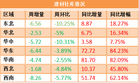 本周各區域降庫繼續,環比均保持下降。