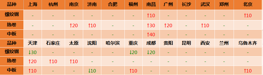 中板24個市場中3個市場上漲10-40,1個市場下跌10,14-20mm普中板平均價格3799元/噸,較上個交易日上調2元/噸。