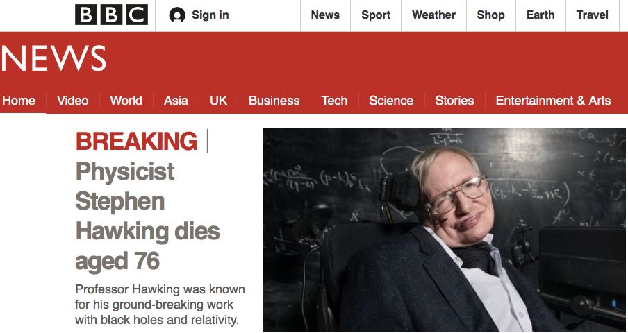 今天,一顆偉大的心臟停止了跳動。這是一條來自英國媒體的一則不幸消息:享譽世界的現代物理學家霍金去世,享年76歲。
