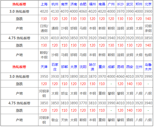 7月22日熱軋板卷價(jià)格:震蕩上行;