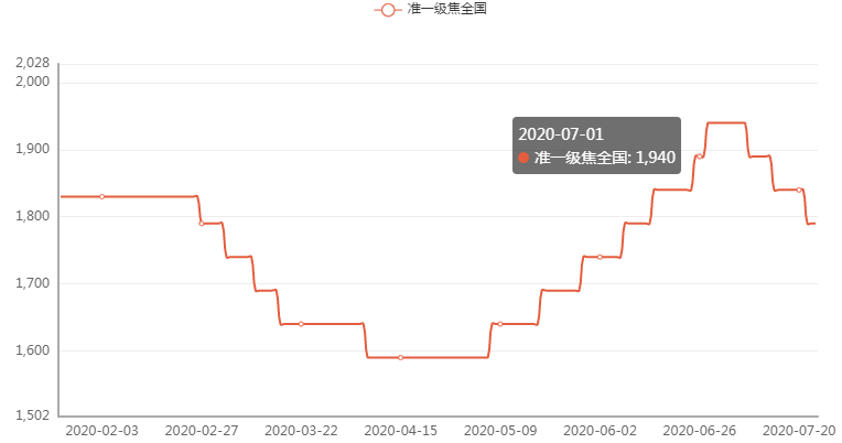 2020年7月中旬,重點統計鋼鐵企業共生產粗鋼2138.40萬噸、生鐵1909.16萬噸、鋼材2039.36萬噸、焦炭316.71萬噸。本旬平均日產,粗鋼213.84萬噸,環比增長0.36%、同比增長5.99%;生鐵190.92萬噸,環比下降0.42%、同比增長6.29%;鋼材203.94萬噸,環比增長3.00%、同比增長6.88%。