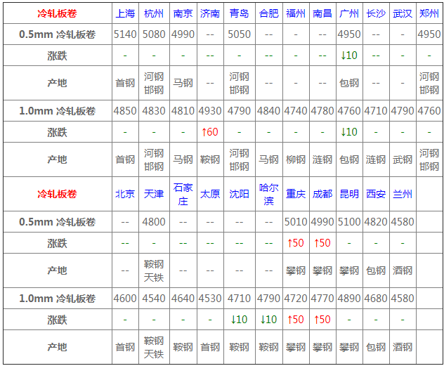 受期貨連續走強提振,今冷軋板卷市價小幅走高,雖漲后成交并不順暢,多為終端詢價觀望,但目前來看,庫存資源量并不多,商戶跟漲操作普遍。綜合考慮,預計短期冷軋板卷價格高位震蕩。
