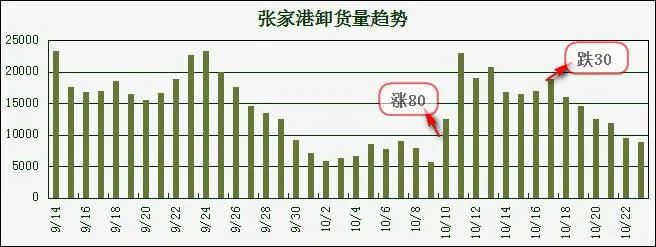 張家港卸貨趨勢來看,國慶中秋小長假期間到貨不高,沙鋼大漲80刺激到貨高位,隨后跌30,廢鋼貿易商心態抵觸,加之一車難求和國五排放標準的運輸難處,廢鋼卸車連續低于100輛,“貨不夠,價格湊”,扛不住才今天漲50元。