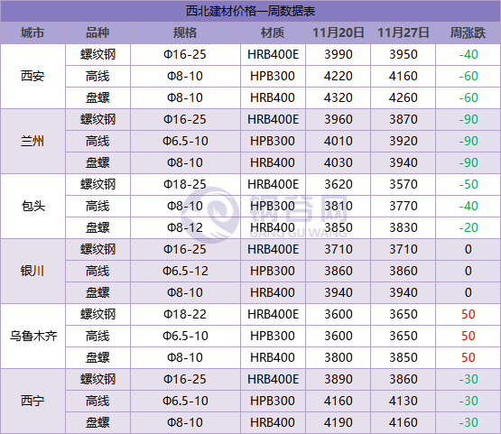 【下周西北建材價格預測】