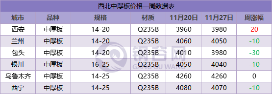 【西北一周價格走勢回顧】