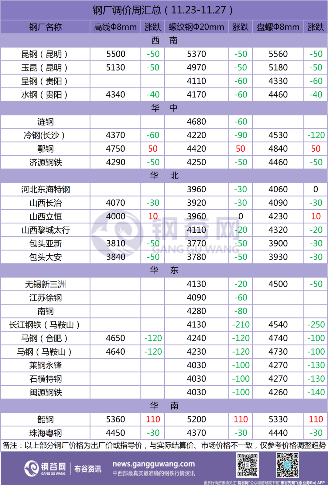 1)鋼廠調價