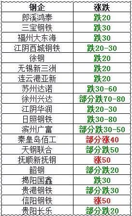 1月15日大同興華鋼鐵下調50-70:拆車件6mm2665,重廢6mm2730,重廢10mm2805,重廢16mm2830,重廢26mm2850,道 軌,火車輪2870,鋼板下角料2870,鋼筋頭10公分2950,鋼筋頭30公分2860,鋼筋頭50公分2825,破碎料比重1.8,2750,破碎 料比重1.5,2630,鋼筋壓塊2760。