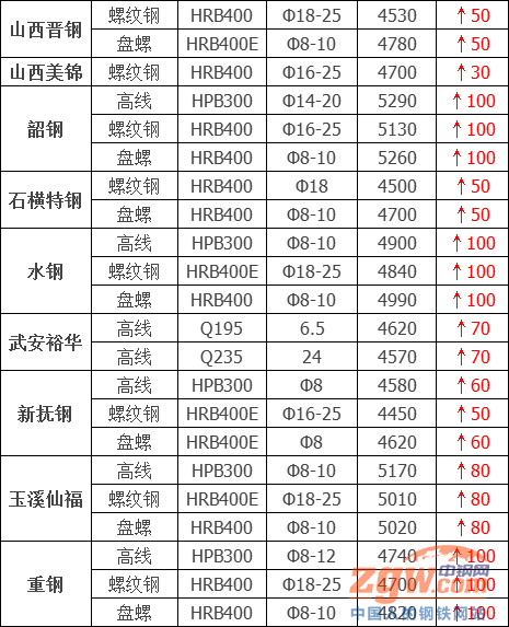 水鋼建材上調100元/噸