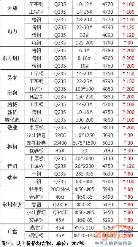 廣富優鋼價格上調20-50元/噸
