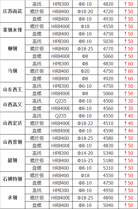 山西晉鋼建材上調50元/噸