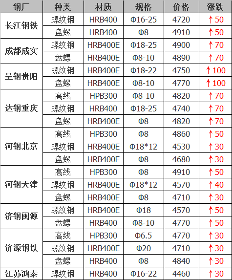 水鋼建材上調50元/噸