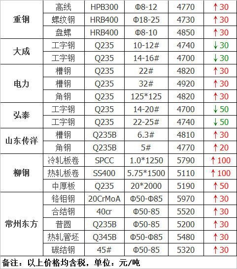 常州東方優鋼上調30元/噸