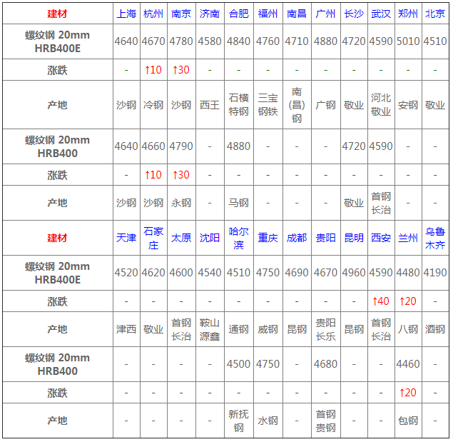 今建材價格較周末小幅上漲,漲幅30元/噸。上午螺紋鋼廠提報價混亂,4710-4750元/噸不等,隨著期螺價格的走低,市場觀望情緒轉濃,主流交易價格回落至4710-4720元/噸;市場反饋,期螺價格震蕩,加之陰雨天氣持續(xù),下游雖陸續(xù)復工,但需求表現依然低迷。整體來看,今日市場低價位資源成交尚可也主要以貿易商補貨為主。預計明日建材價格盤整運行。