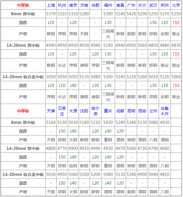 今全國中板漲跌調整,幅度10-60元/噸,期鋼盤中觸底反彈,市場階段性底部有所顯露,華北個別成交可,其余暫顯觀望;