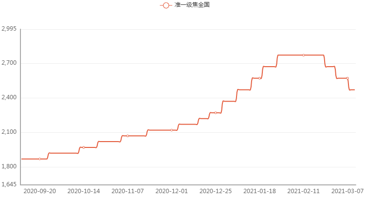 環(huán)球市場,美國1.9萬億刺激計(jì)劃正式簽署,美股三大指數(shù)集體上漲,美原油大幅收漲2.5%,帶動大宗商品普漲,期鋼夜盤一度漲超200,日內(nèi)沖高回落漲幅收窄,現(xiàn)貨迎來普漲,但成交偏弱,高價(jià)成交不暢,持續(xù)上漲動力不足。 先來看看市場報(bào)價(jià): 期鋼漲幅收窄,現(xiàn)貨普漲 期鋼夜盤一度漲超200,日內(nèi)高位回落,漲幅收窄。期螺上漲135收報(bào)4729,期卷上漲151收報(bào)4995,鐵礦石下跌3收報(bào)1059,焦煤下跌23.5收報(bào)1505,焦炭下跌84.5收報(bào)2244。 現(xiàn)貨方面,據(jù)中鋼網(wǎng)統(tǒng)計(jì),今日成交較昨日下降,高價(jià)成交不暢,少數(shù)市場存在投機(jī)囤貨需求。 螺紋鋼24個(gè)市場中22個(gè)市場上漲20-110,20mmHRB400E平均價(jià)格4717元/噸,較上個(gè)交易日上調(diào)61元/噸; 熱卷24個(gè)市場中24個(gè)市場上漲20-160,4.75熱軋板卷平均價(jià)格4975元/噸,較上個(gè)交易日上調(diào)87元/噸; 中板24個(gè)市場中23個(gè)市場上漲30-100,14-20mm普中板平均價(jià)格4972元/噸,較上個(gè)交易日上調(diào)59元/噸。 焦炭迎第四輪提降 焦炭迎來第四輪提降。山西建龍、河北新武安、山東部分鋼企對焦炭采購價(jià)下調(diào)100元/噸,此次提降范圍有望進(jìn)一步擴(kuò)大,焦炭將連續(xù)下跌400元/噸,成材支撐有所下降。 澳洲黑德蘭港鐵礦石出口降至兩年低位 澳大利亞皮爾巴拉港務(wù)局?jǐn)?shù)據(jù)顯示,2021年2月澳大利亞最大的鐵礦石出口港黑德蘭港鐵礦石出口總量3748.8萬噸,同比下降3.36%,環(huán)比減少11.23%,創(chuàng)近兩年來低位。反映當(dāng)前鐵礦石供應(yīng)端沒有明顯改善,鐵礦石價(jià)格高位仍有支撐。 全國建材成交回升至20萬噸以上 隨著重大項(xiàng)目開工推進(jìn),全國建材成交持續(xù)回升至24萬噸,說明需求端仍有支撐。但從市場反饋來看,過高的鋼價(jià)令下游采購謹(jǐn)慎,存在壓單的情況。目前成交量仍低于旺季平均水平。 唉 說了這么半天 鋼價(jià)還是... 綜上,鋼價(jià)此輪快速拉漲主要受到外圍市場影響,基本面沒有發(fā)生根本變化。投機(jī)性需求增加,而過高的價(jià)格終端接受度不高,今日成交已有所回落,預(yù)計(jì)鋼價(jià)漲勢放緩,周末鋼價(jià)穩(wěn)中有漲。