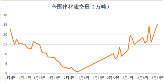由于今年市場價格持續高位,終端接收度較低,市場觀望情緒濃厚,成交量反復,最新數據顯示,全國建材成交持續回升,但日均最高僅在25萬噸,低于旺季30萬噸水平,下游需求并未充分釋放。