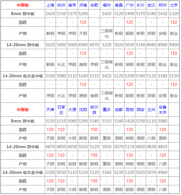 今全國中板市場穩中偏強,幅度10-30元,期貨市場震蕩運行,商家操作上挺價出貨為主,現貨市場成交表現一般;