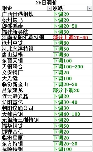 3月25日唐山縱橫下調(diào)80:模具鋼3180,法蘭片3180,大轉(zhuǎn)子弓子板3120,優(yōu)質(zhì)一級(jí)3180,重a3100,優(yōu)質(zhì)鑄鐵2900,鋼板滾剪料3200,鋼板料一級(jí)3180,鋼筋切粒3180,干磨鐵2890,矽鋼片小料2890,鋼筋壓塊3010,特級(jí)破碎料3040,不含稅 。