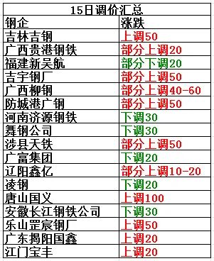 15日唐山廢鋼調(diào)價:重a3290-3320,一級破碎料3200-3230,剪切料2880-2910,鋼坯頭3440-3470,鋼板料3360-3400,鋼筋切頭3590-3630,矽鋼片3150-3180,馬蹄鐵3290-3350,不含稅。