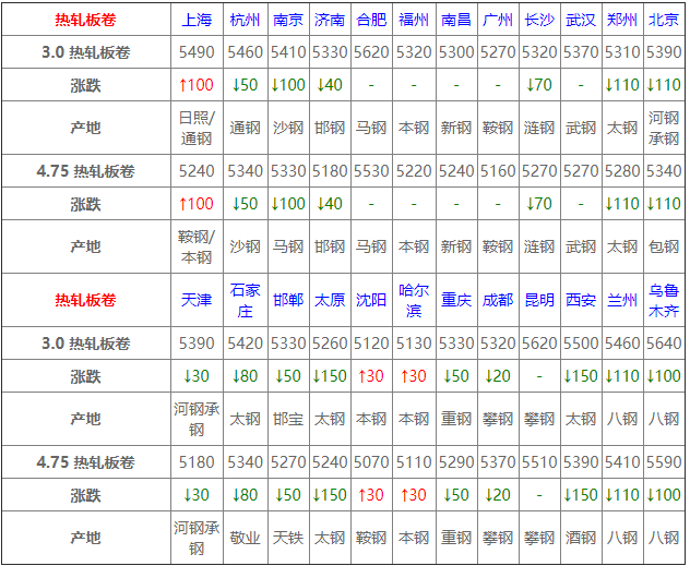 今全國熱卷穩中弱調,幅度20-100,期卷走勢轉好,市場詢價積極性有所提升,商戶心態趨穩,下游仍多處觀望,成交較晨有所提升。
