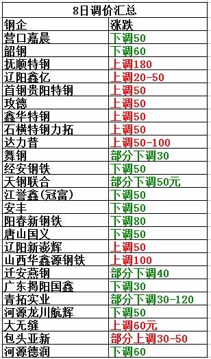 6月8日遷安燕鋼部分下調(diào)40,優(yōu)質(zhì)3670,優(yōu)質(zhì)一3660,重型一3670,重二3650,重a3630,重b3570,重c3530,中a3590,中b3510,中c3470,小型3225,統(tǒng)料2925,優(yōu)質(zhì)鑄鐵3510,普通鑄鐵3310,一級剪切料3410,二級剪切料3370,三-級剪切料2820,不含稅。