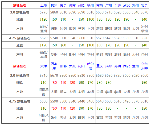 今全國熱卷下行為主,幅度10-120,期卷走勢欠佳,下挫現貨市場,商戶挺價意愿有所松動,下游觀望心理明顯,備貨意愿不佳,整體成交顯清淡;