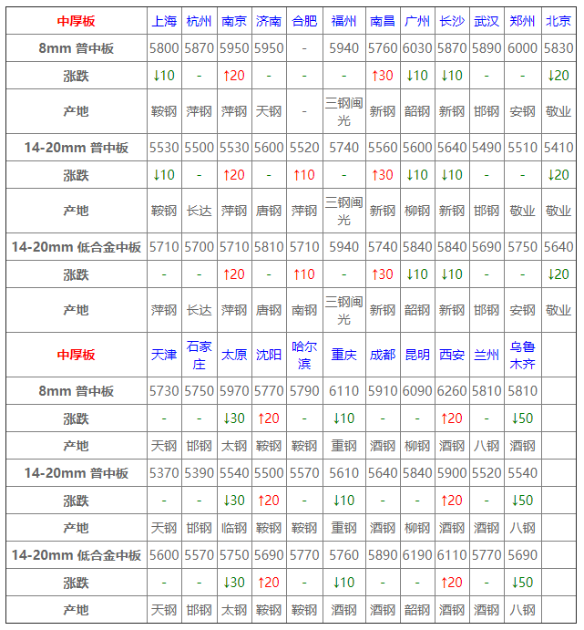 今全國中板漲跌互現,調整幅度10-50,期螺走勢欠佳,下挫現貨市場心態,交投平平,下游觀望心態明顯,整體成交欠佳;