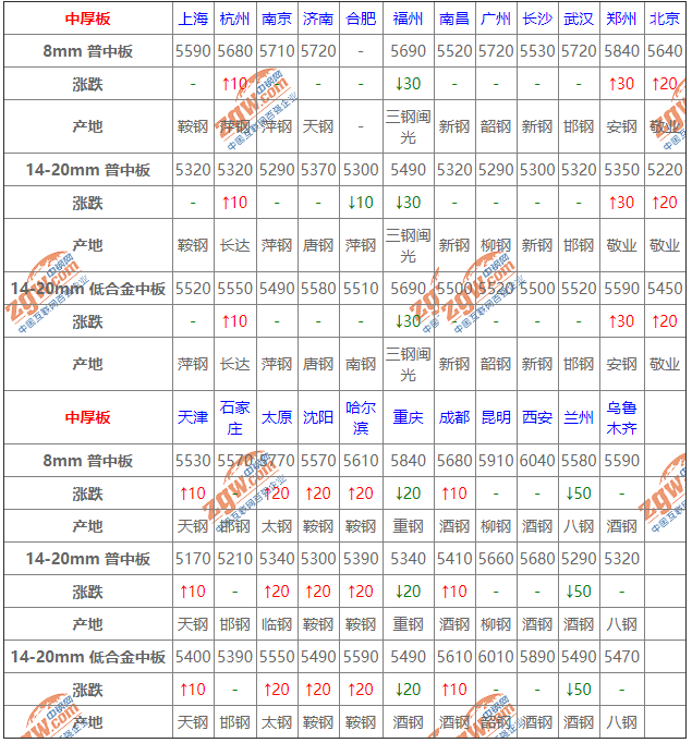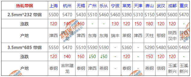 7月1日鋼鐵價格漲跌圖:主流小漲 7月1日建材價格:小幅上調(diào); 今建材價格堅挺運(yùn)行,據(jù)市場反饋,目前處于需求淡季,周邊主導(dǎo)市場庫存已開始小幅累庫。另外,節(jié)日期間,受部分工地停工以及運(yùn)輸車輛停運(yùn)等影響,下游采購量有所影響。綜合來看,短期建材價格盤整運(yùn)行。 2 7月1日熱軋板卷價格:以漲為主; 今熱軋板卷價格小漲,今日早盤期貨市場震蕩偏強(qiáng),現(xiàn)貨市場心態(tài)稍好,商家報價小幅上漲,市場成交整體一般。總體來看,目前需求整體偏弱,成交難有明顯改善,商家多持觀望態(tài)度。預(yù)計短期內(nèi)熱卷市場維持震蕩運(yùn)行。 3 7月1日冷軋板卷價格:穩(wěn)中調(diào)整; 今冷軋板卷價格穩(wěn)中運(yùn)行,市場主流以穩(wěn)價出貨為主,市場庫存累積數(shù)量較大,下游客戶采購意愿低,預(yù)計冷軋市場穩(wěn)中偏強(qiáng)運(yùn)行; 4 7月1日中厚板價格:漲跌都有; 今中板價格小幅調(diào)整。期貨主力震蕩上揚(yáng),現(xiàn)貨交投各異,整體改善不明顯,盤中松動出貨,考慮周邊有所企穩(wěn),預(yù)計短期觀望整理; 5 7月1日熱帶價格:上行為主; 今熱帶市價上行為主,據(jù)了解,北方窄帶主流漲20-30,整體成交平平,中寬帶則是漲后成交不佳偏弱調(diào)整,且調(diào)坯廠和架子管廠今晚后陸續(xù)復(fù)產(chǎn),明日北方或堅挺為主。考慮成本端堅挺,故預(yù)計短期帶鋼價格或穩(wěn)中整理 6 7月1日型材價格:持穩(wěn)運(yùn)行; 今型價趨強(qiáng)調(diào)整。成本支撐仍存,廠商盼漲心理趨濃,市場成交氛圍向好,然下游參市積極性不高,短期型價將低位高靠。 7 7月1日管材價格:持穩(wěn)運(yùn)行; 今管材價格持穩(wěn)運(yùn)行,成交一般。成本端堅挺上漲,環(huán)保停產(chǎn)停運(yùn),廠商近幾日幾乎不出貨,訂單稀少,預(yù)計明日開工,廠商心態(tài)多隨行就市。因此預(yù)計后市焊管市場或?qū)⒄鹗庍\(yùn)行。